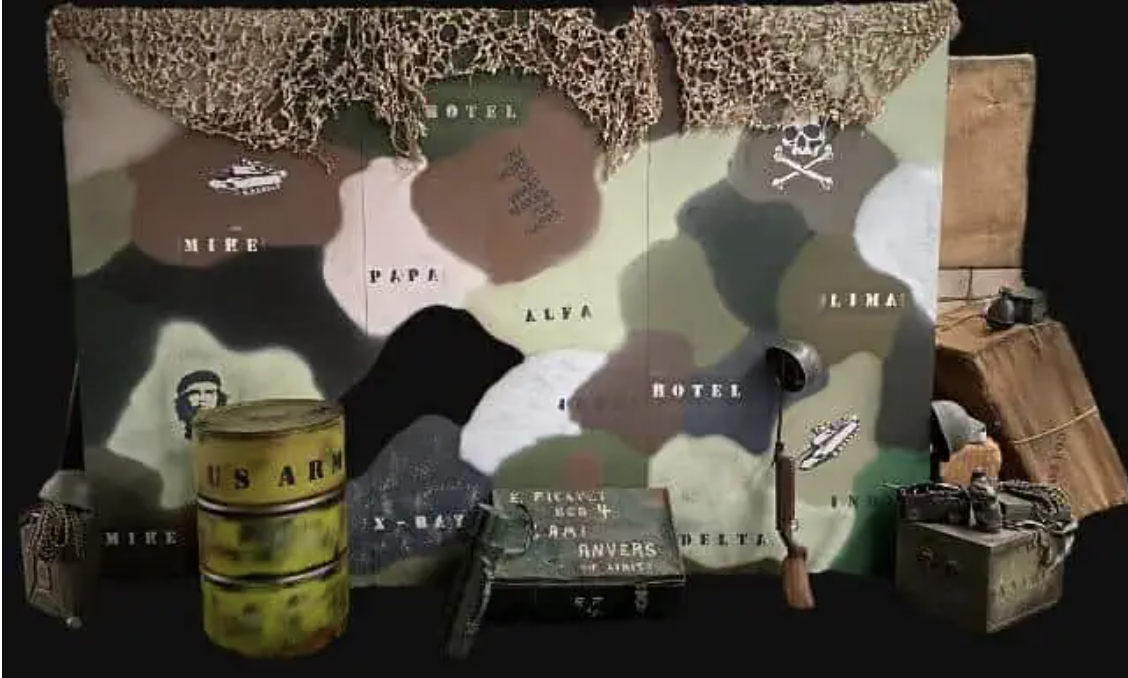 Ces décors militaires permettent de structurer l’espace et de transformer un lieu classique en véritable décor immersif.