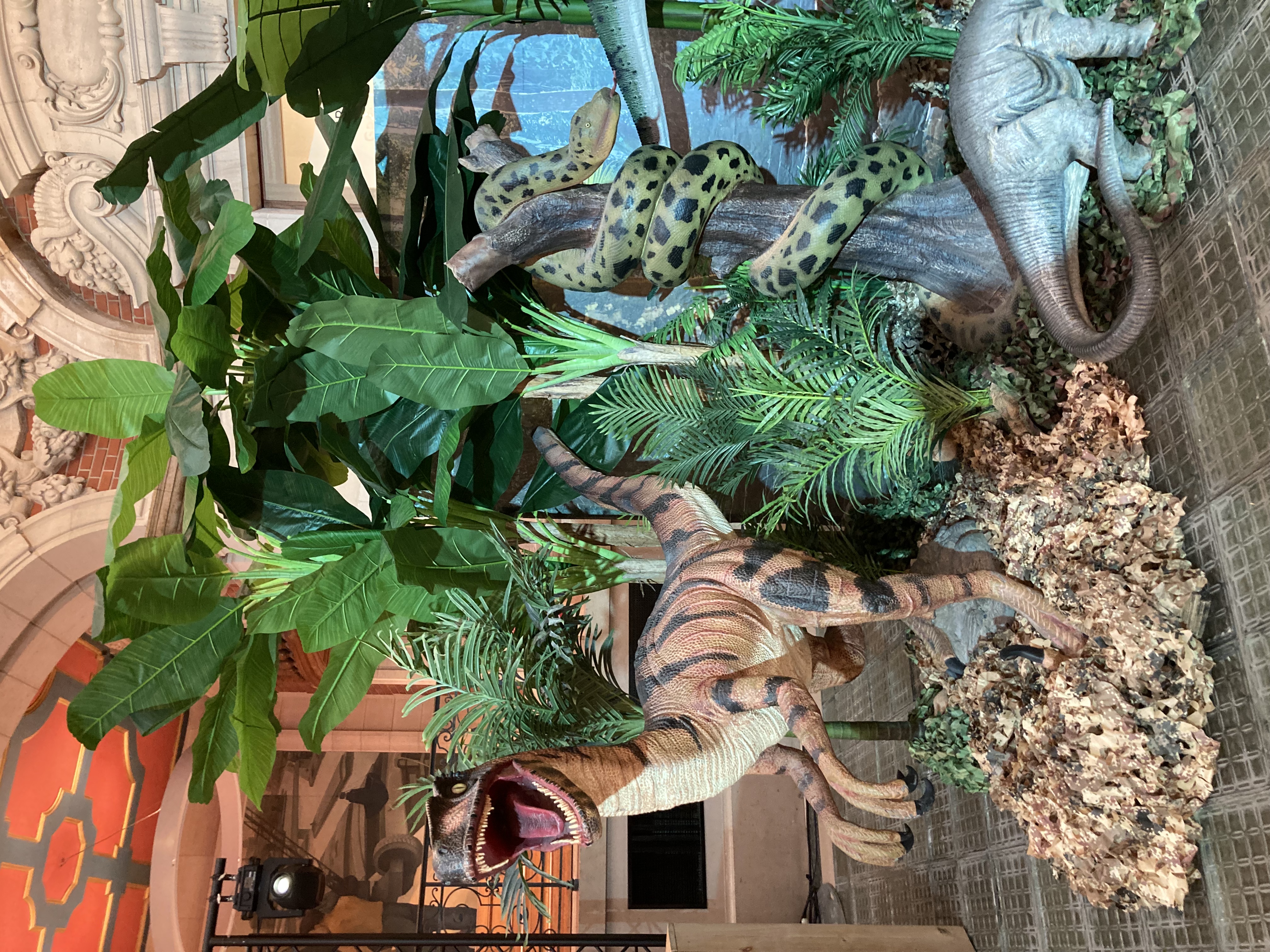 Cette prestation de décors à thème comprend des reproductions impressionnantes comme le T-Rex, ainsi que des éléments de décors thème jungle préhistorique : végétation dense, ruines, rochers, œufs de dinosaures géants et ambiance sauvage.