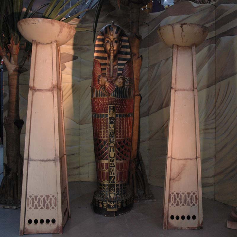 Cette prestation de location de décors Égypte comprend notamment la location de décors pyramide égyptienne, la location de sphinx, des décors de sarcophage, des statues de pharaon, des momies, ainsi que différents accessoires inspirés des temples et hiéroglyphes.