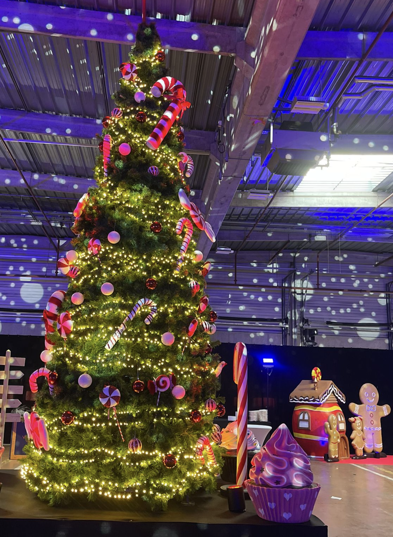 Sapins décorés, guirlandes lumineuses, traîneaux et accessoires festifs viennent compléter la scénographie pour une immersion totale.