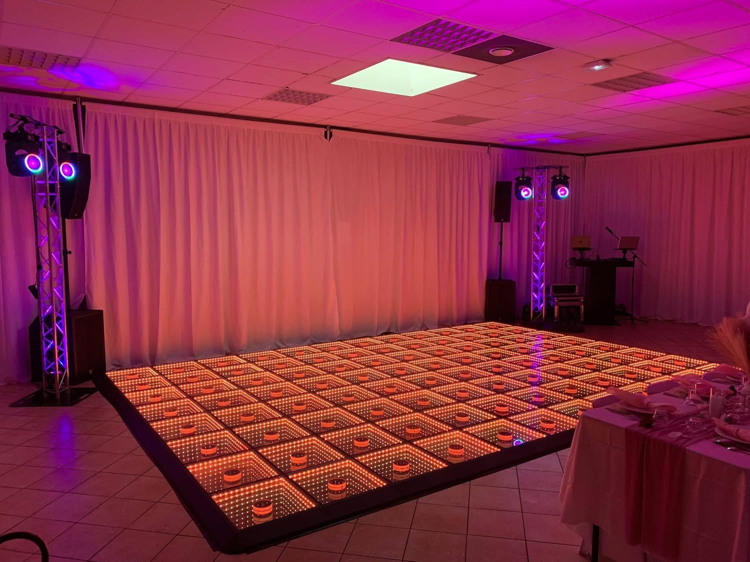 Faciles à installer et entièrement personnalisables, nos pistes de danse offrent un rendu spectaculaire qui fera de votre dancefloor un véritable point central, garantissant une expérience mémorable pour tous vos invités.